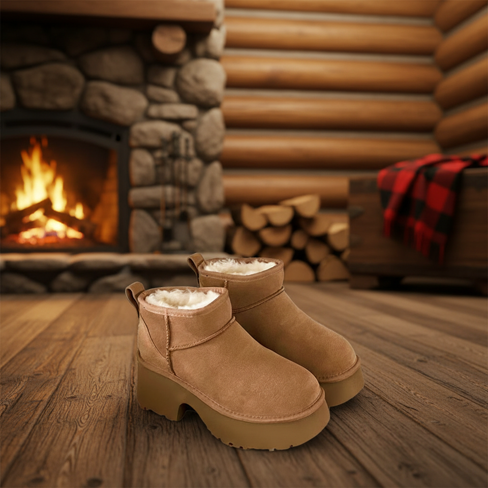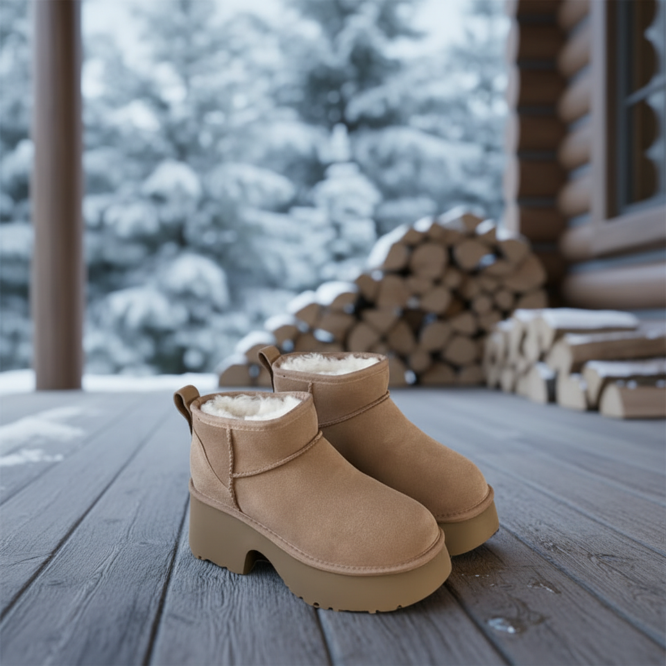 รองเท้าบูทหิมะฤดูหนาวทรงเมอร์เมดสำหรับผู้หญิง หนังแกะแท้ พื้นรองเท้า EVA บุซับในกันหนาว เพิ่มความสูง สวมใส่สบาย อุ่น