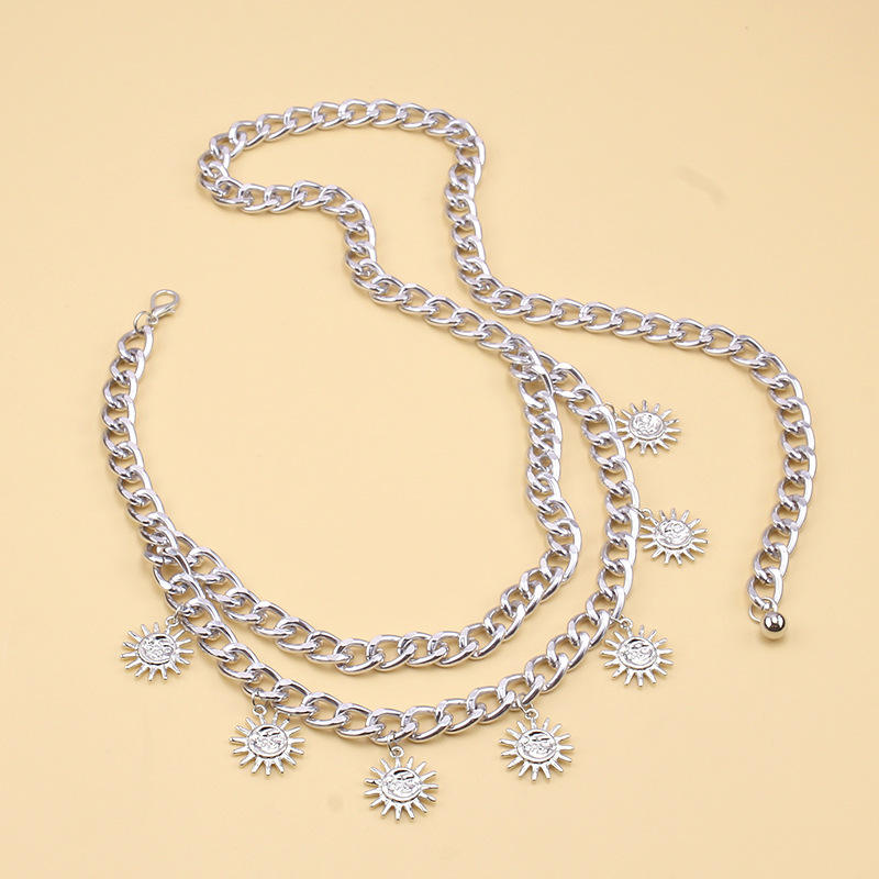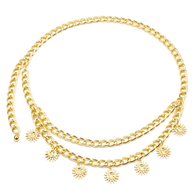 โซ่คาดเอวโลหะสำหรับผู้หญิง ทำจากโลหะผสมสังกะสี ประดับจี้รูปพระอาทิตย์ หลายชั้น สไตล์ฮิปฮอป เหมาะสำหรับงานปาร์ตี้ เป็นเครื่องประดับแฟชั่น