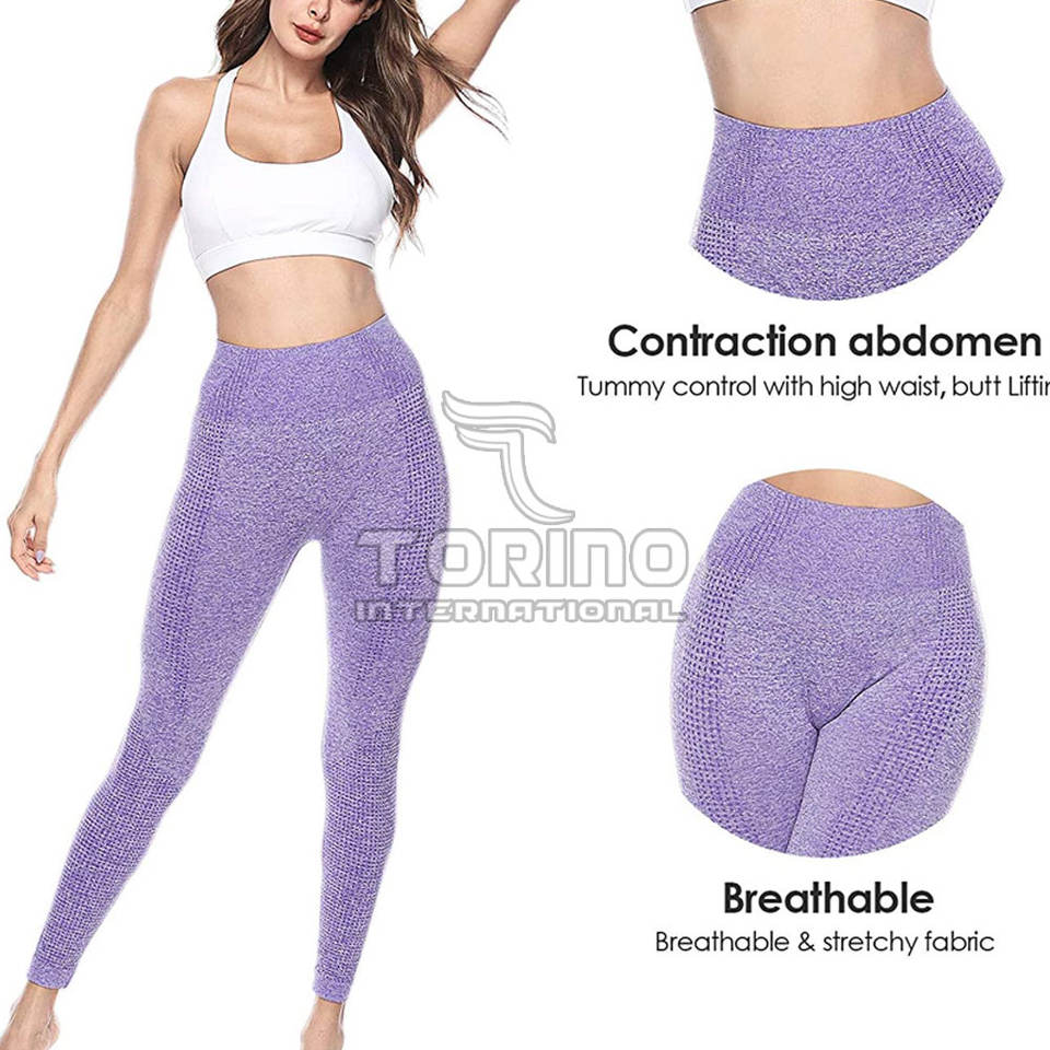 กางเกงโยคะเอวกลางสำหรับผู้หญิง ผ้ายืดคุณภาพสูง ผสมสแปนเด็กซ์/ไนลอน ปิดเอวยางยืด กำลังเป็นที่นิยม ขายดี สีพื้น