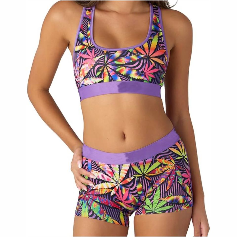 ชุดออกกำลังกายผู้หญิง กางเกงขาสั้นเอวกลาง เสื้อชั้นในออกกำลังกาย ชุดกีฬา ระบายอากาศ ชุดโยคะไร้ตะเข็บ ชุดกีฬาสองชิ้น ด้านหน้าเปิด