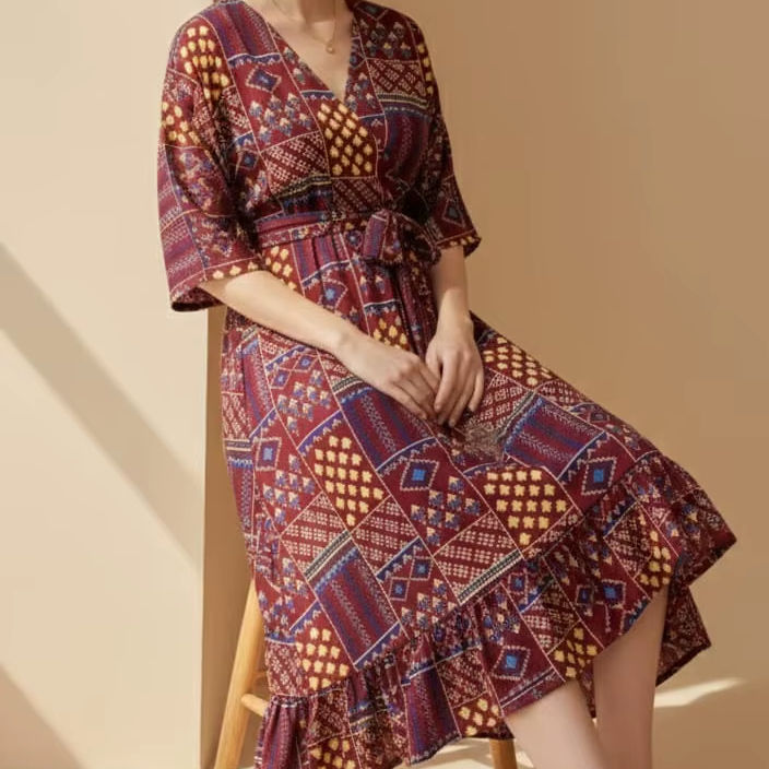 เดรสยาวปานกลางสำหรับผู้หญิง ลายพิมพ์นามธรรม ทรงพลิ้วสบาย ใส่ได้ทุกวัน ติดกระดุม สีฟ้า ระบายอากาศได้ดี เอวธรรมชาติ
