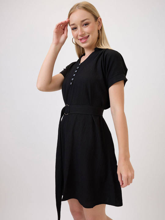 เดรสชีฟองทรงเอวธรรมชาติพิมพ์ลายคอวีความยาวระดับเข่าสำหรับผู้หญิง ดีไซน์ตะวันตกใหม่ล่าสุด ขายส่งราคาดีที่สุด