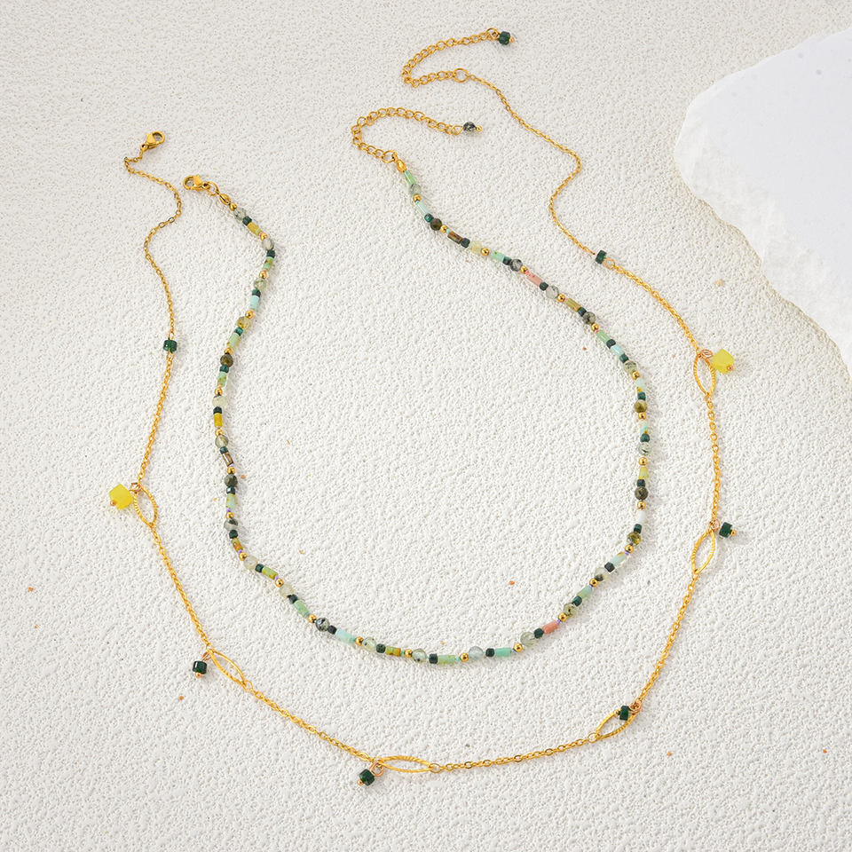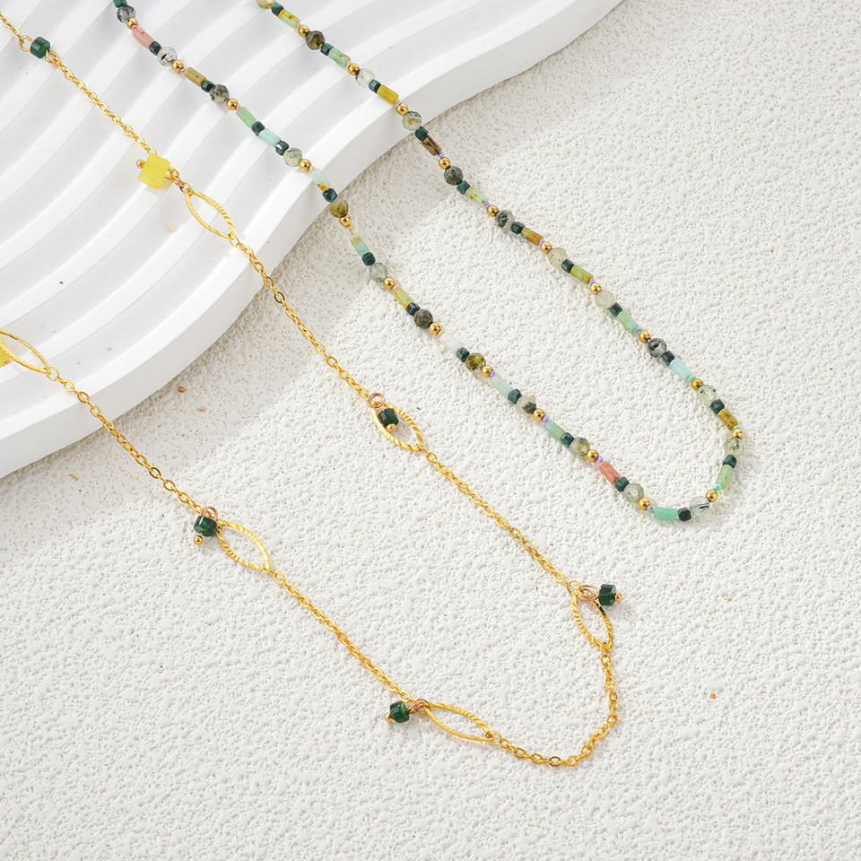 สร้อยคอประดับลูกปัดหินธรรมชาติแบบมินิมอลสำหรับผู้หญิง น้ำหนักเบา สีสันสดใส ดีไซน์ไม่ซ้ำใคร เหมาะสำหรับใส่เที่ยวลำลอง เครื่องประดับแฟชั่น