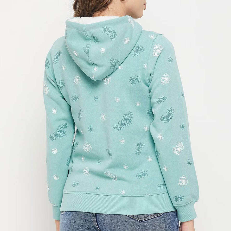 เสื้อฮู้ดซิปผู้หญิงสีเขียวมิ้นท์ พิมพ์ลาย ผ้าโพลีเอสเตอร์ขนแกะ เป็นมิตรกับสิ่งแวดล้อม แจ็คเก็ตลำลองสำหรับฤดูหนาว