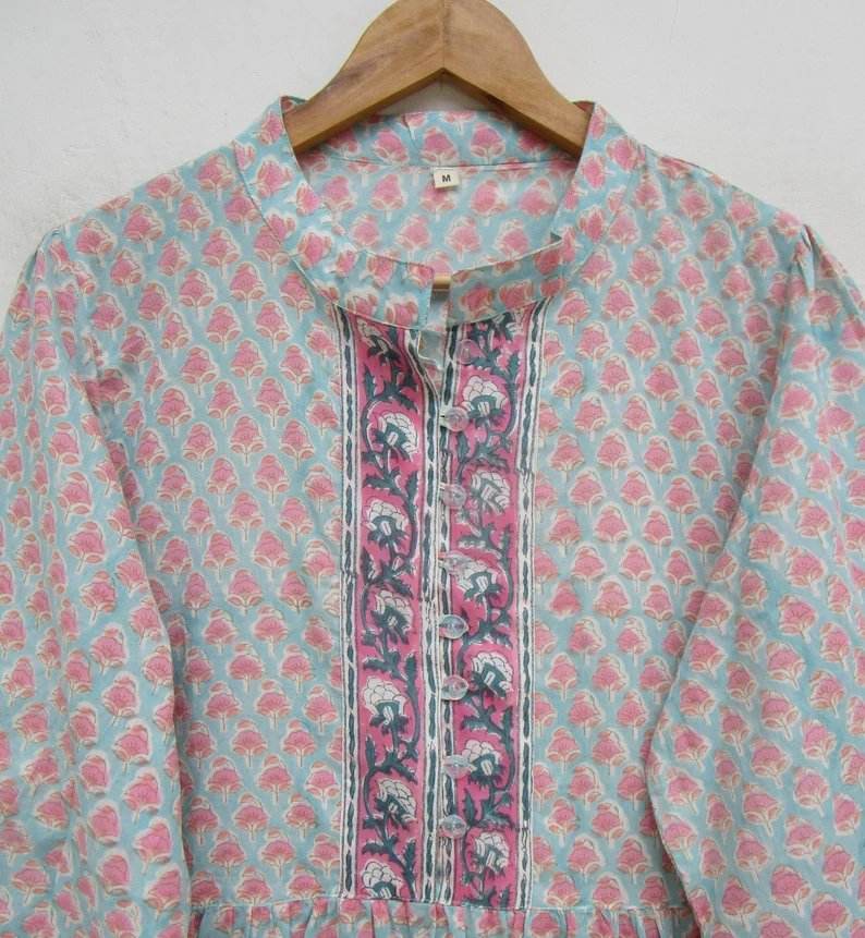 ชุดแม็กซี่ยาวผ้าฝ้ายพิมพ์ลายดอกไม้ผสมสีของผู้หญิงพร้อมชุดแม็กซี่ยาวปุ่มสําหรับฤดูร้อน