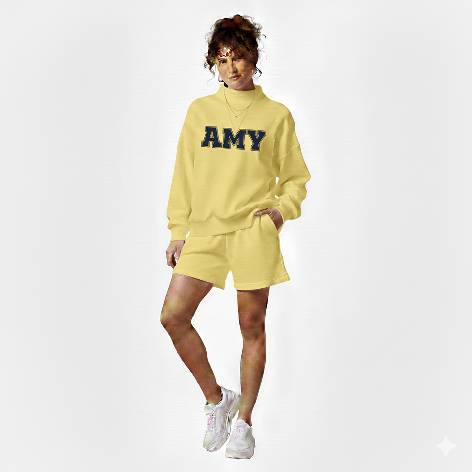 Custom Women Mockneck And Shorts Set
