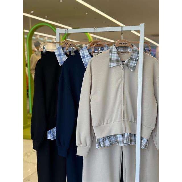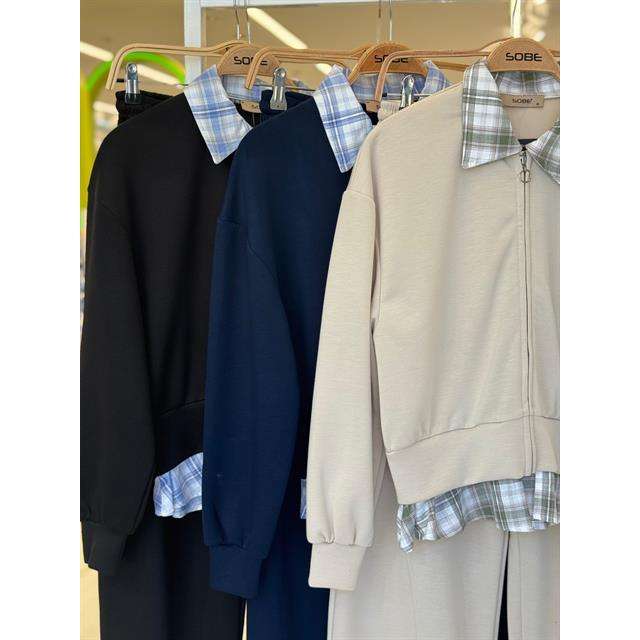 ชุดสูทโมดัลสำหรับผู้หญิงพร้อมปกและชายเสื้อ 10252 เสื้อโค้ทขนเทียม