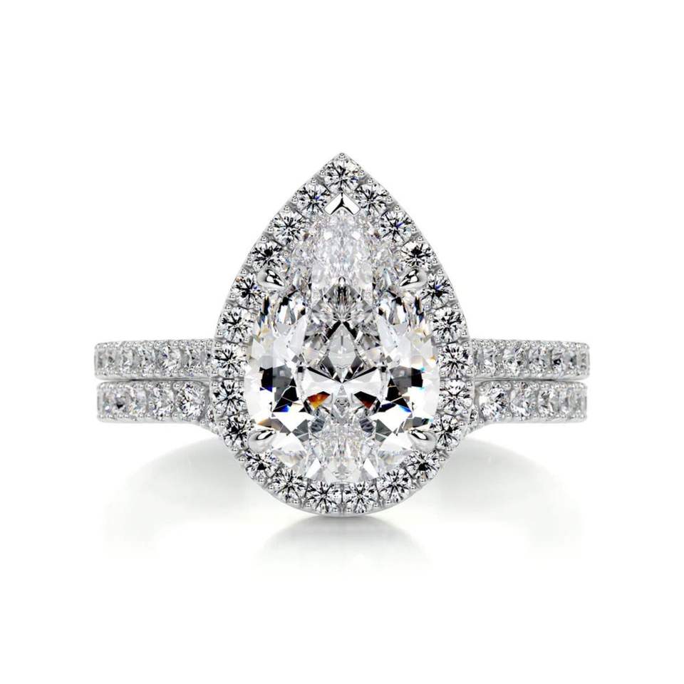 แหวนแต่งงานชุบทองประดับมอสซาไนต์สำหรับผู้หญิง ชุดแหวนเจ้าสาวประดับเพชรทรงลูกแพร์แบบวงแหวน สำหรับวันครบรอบวันเกิด โอกาสพิเศษ