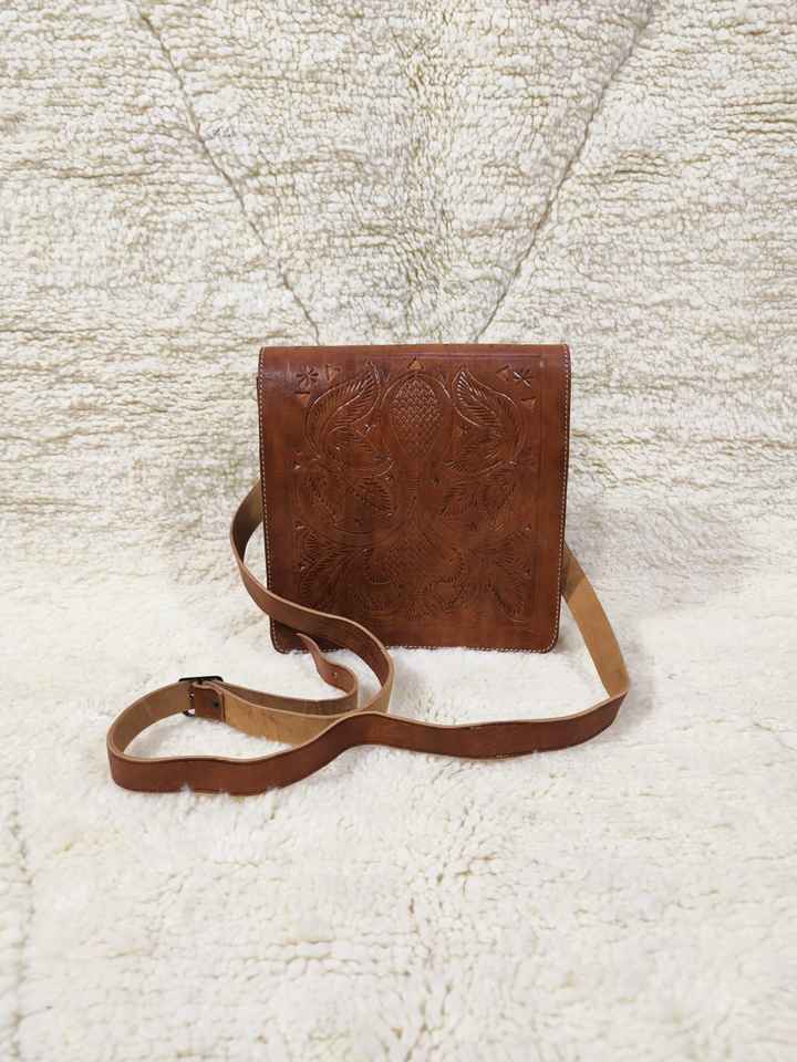 กระเป๋าสะพายไหล่สไตล์โมร็อกโกสำหรับผู้หญิง ลายเรขาคณิต หนังแท้ บุด้วยหนังแท้ ปิดด้วยผ้าคลุม