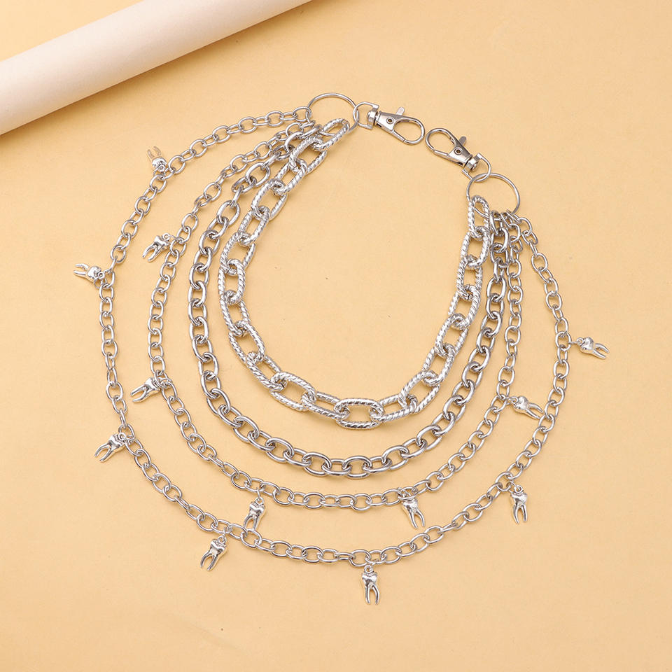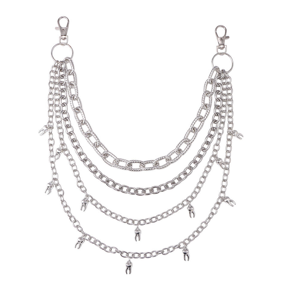 color:Multi-layered tooth pendant pant chain white K