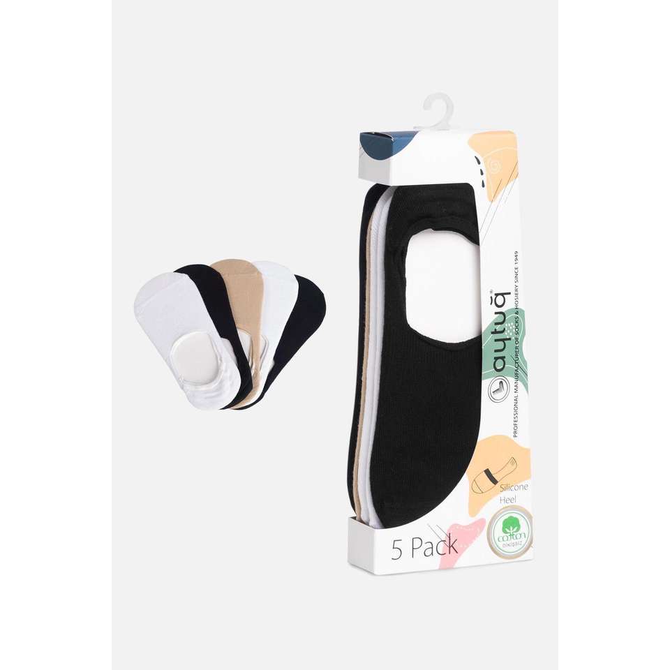 Women's Multicolored Printed Woven Heeled Ballet Socks 5 Pairs Pamuk Blend Turkey