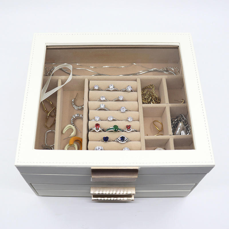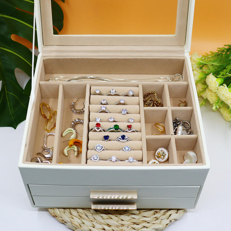 กล่องใส่เครื่องประดับผู้หญิงอเนกประสงค์ขนาดใหญ่ ทำจากหนัง PU พร้อมลิ้นชัก สำหรับเก็บต่างหู แหวน สร้อยคอ ใช้เป็นของขวัญ สามารถปรับแต่งได้