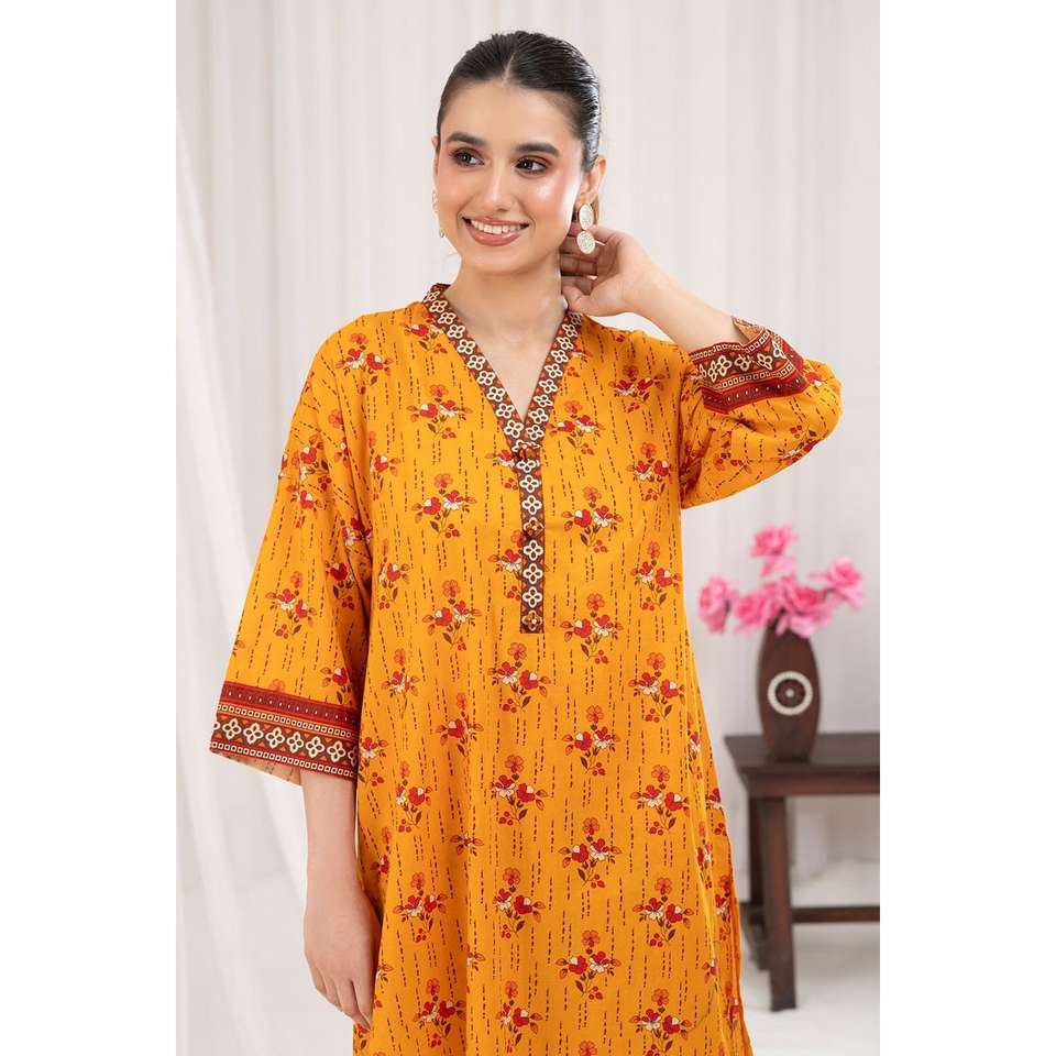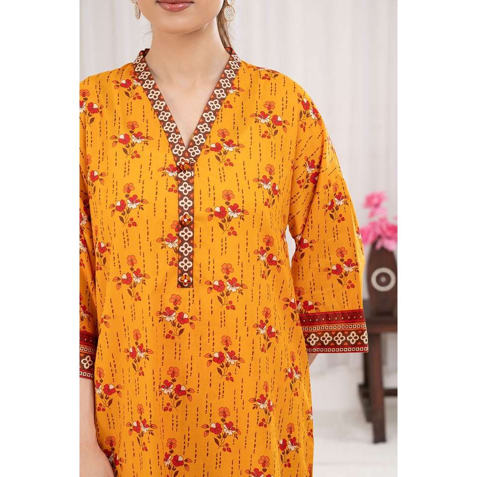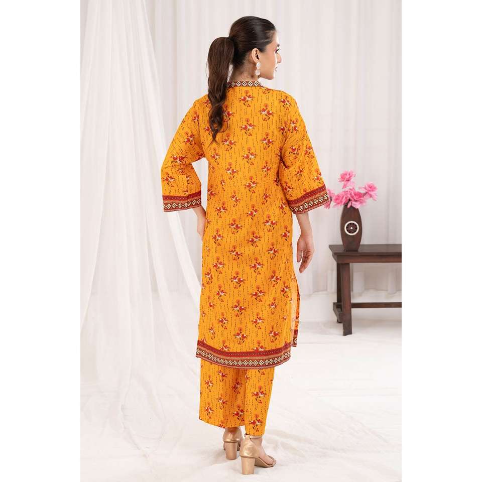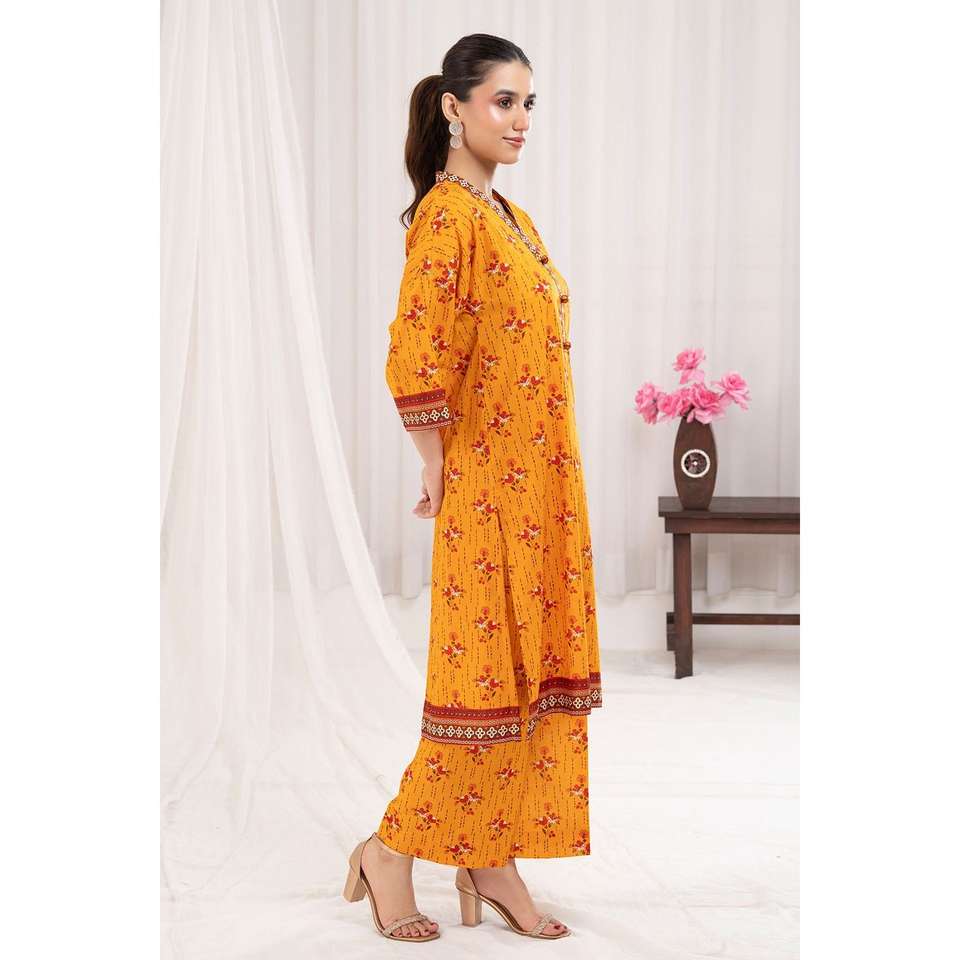 ชุดสูทผ้าลอน 2 ชิ้น สีมัสตาร์ดสำหรับผู้หญิง (แบบยังไม่เย็บติดกัน)