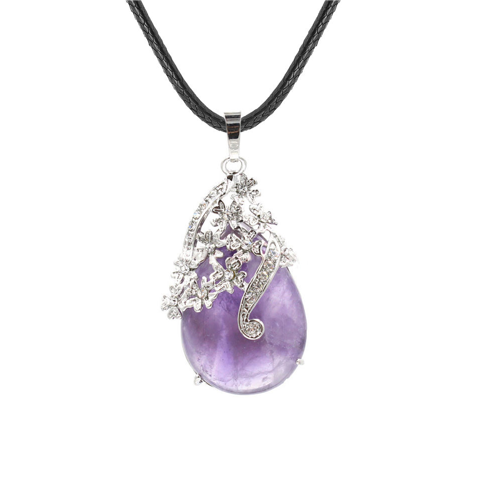 สร้อยคอจี้หินคริสตัลธรรมชาติของผู้หญิงน้ำตานางฟ้ากับลูกดอกไม้เพชรสำหรับเป็นของขวัญเครื่องประดับ aonaya