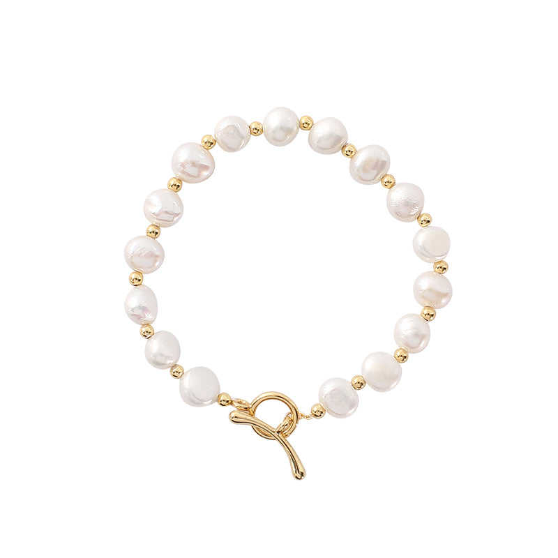 สร้อยข้อมือไข่มุกน้ำจืดทรงบาร็อคธรรมชาติสำหรับผู้หญิง ดีไซน์เฉพาะตัว สร้อยข้อมือ OT