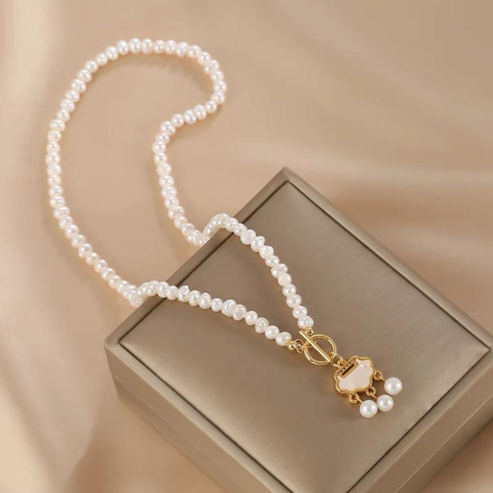 สร้อยคอมุกน้ำจืดธรรมชาติสำหรับผู้หญิง พร้อมตัวล็อคแบบ OT สไตล์เรโทร น่ารัก ประดับลูกปัดแบบร้อย สร้อยคอประดับกระดูกไหปลาร้า ของขวัญสำหรับแฟนสาว