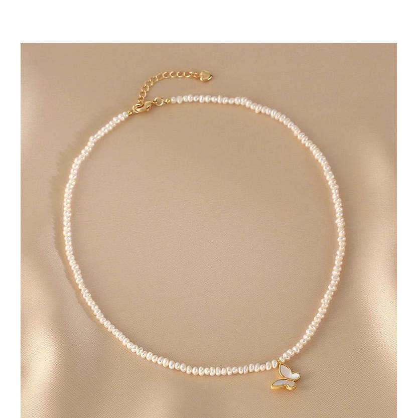 สร้อยคอมุกน้ำจืดทรงเม็ดข้าวเล็กสำหรับผู้หญิง ดีไซน์ผีเสื้อสุดหรู เหมาะสำหรับเป็นของขวัญในโอกาสต่างๆ