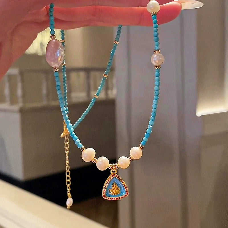 สร้อยคอมุกธรรมชาติของผู้หญิงพร้อมจี้หยกสีฟ้าแบบจีนใหม่ที่สวยงามประณีต