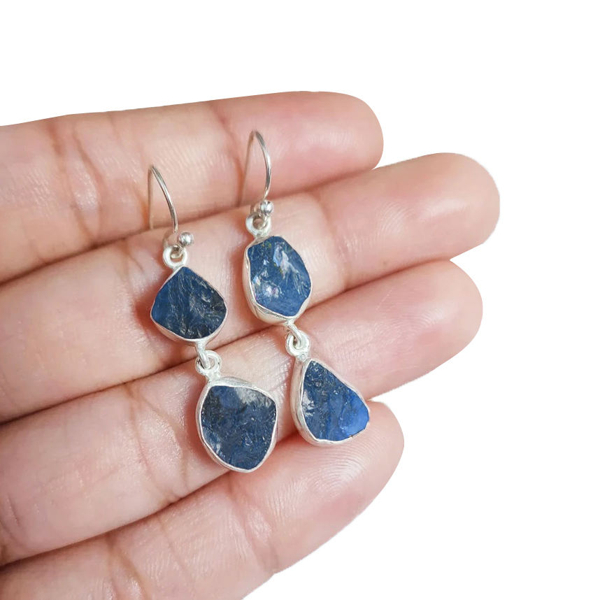 แซฟไฟร์ธรรมชาติสำหรับผู้หญิง8-10มม. 925เงินสเตอร์ลิงต่างหูห้อยต่างหูแบบห้อยอัญมณีคริสตัลดิบ