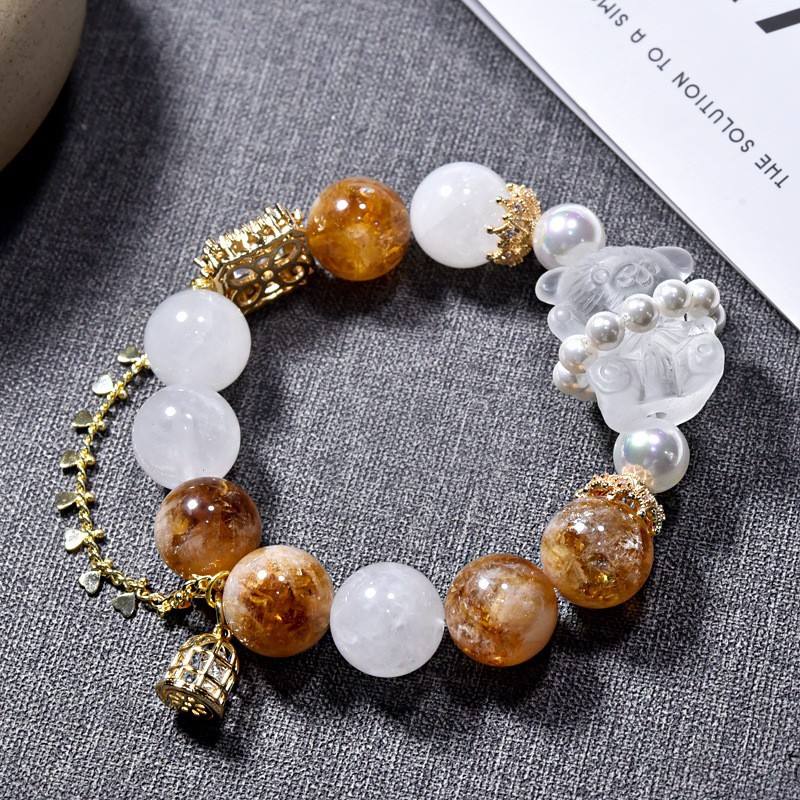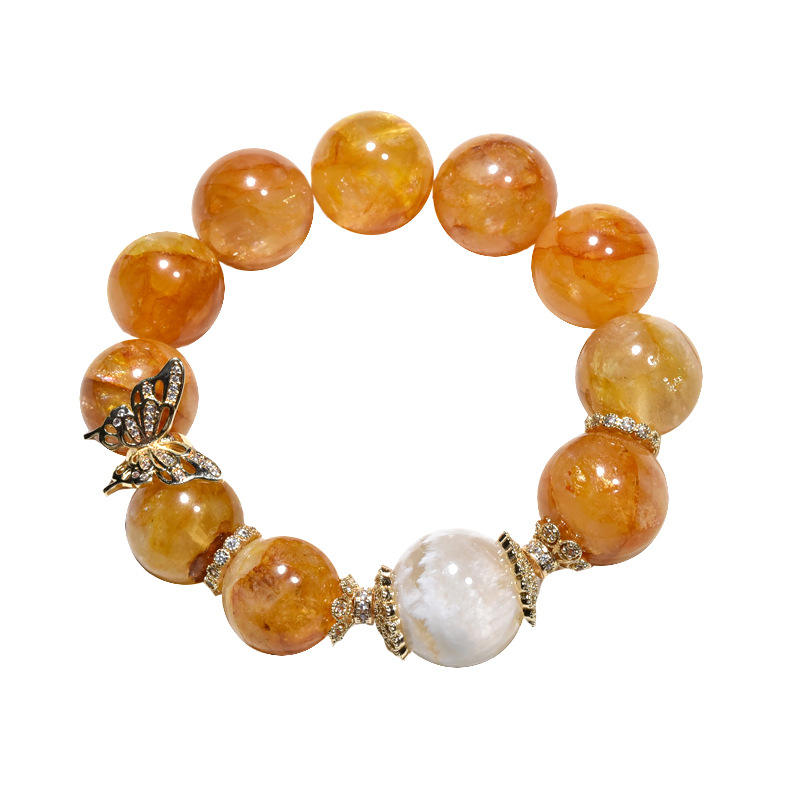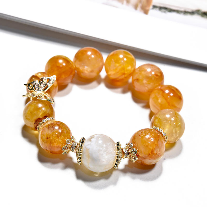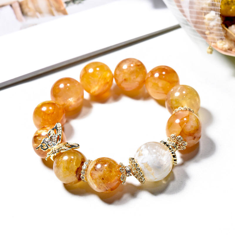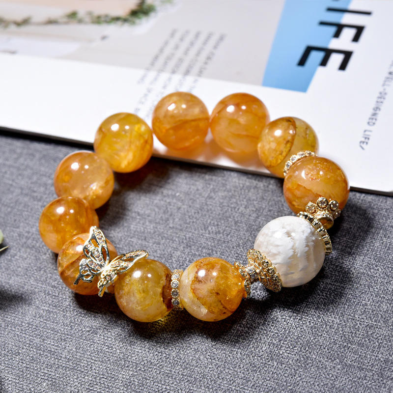 สร้อยข้อมือรักษาสีสำหรับผู้หญิงลายดอกไม้เหงือกสีเหลืองหินธรรมชาติผีเสื้อเกล็ดหิมะ