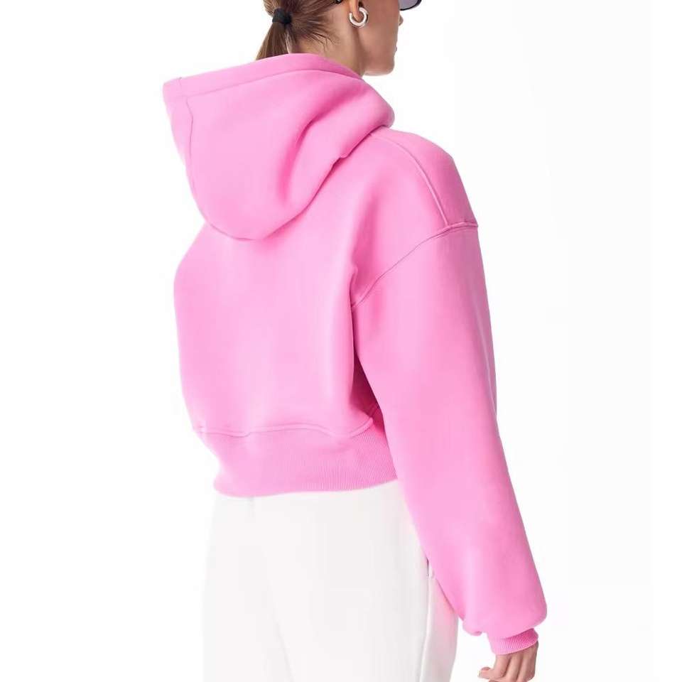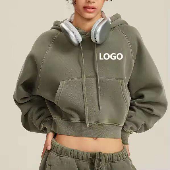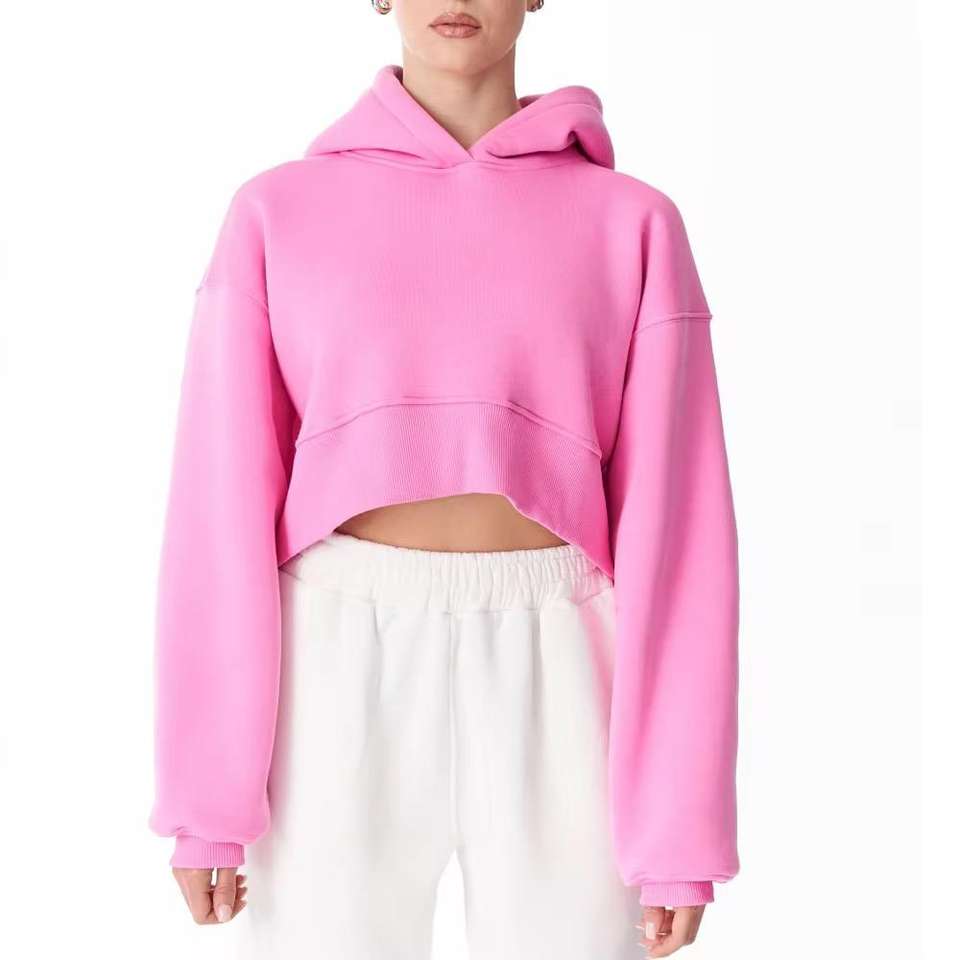 เสื้อฮู้ดโอเวอร์ไซส์ผู้หญิง ผ้าโพลีเอสเตอร์ 100% ลายพิมพ์ 3 มิติ แบบครอปท็อป สีดำ ผ้าฟลีซ สำหรับฤดูใบไม้ผลิ ฤดูใบไม้ร่วง ลายเรียบ