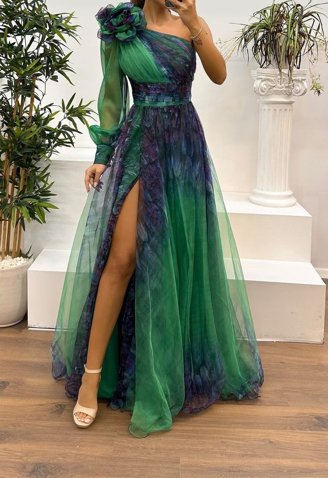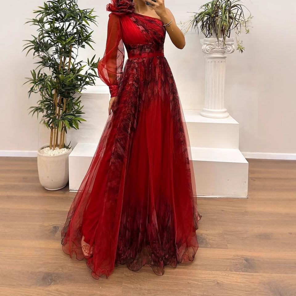 เดรสลำลองทรงยาวแบบไม่สมมาตรสีพื้นรักษ์โลกสำหรับผู้หญิงรุ่นใหม่