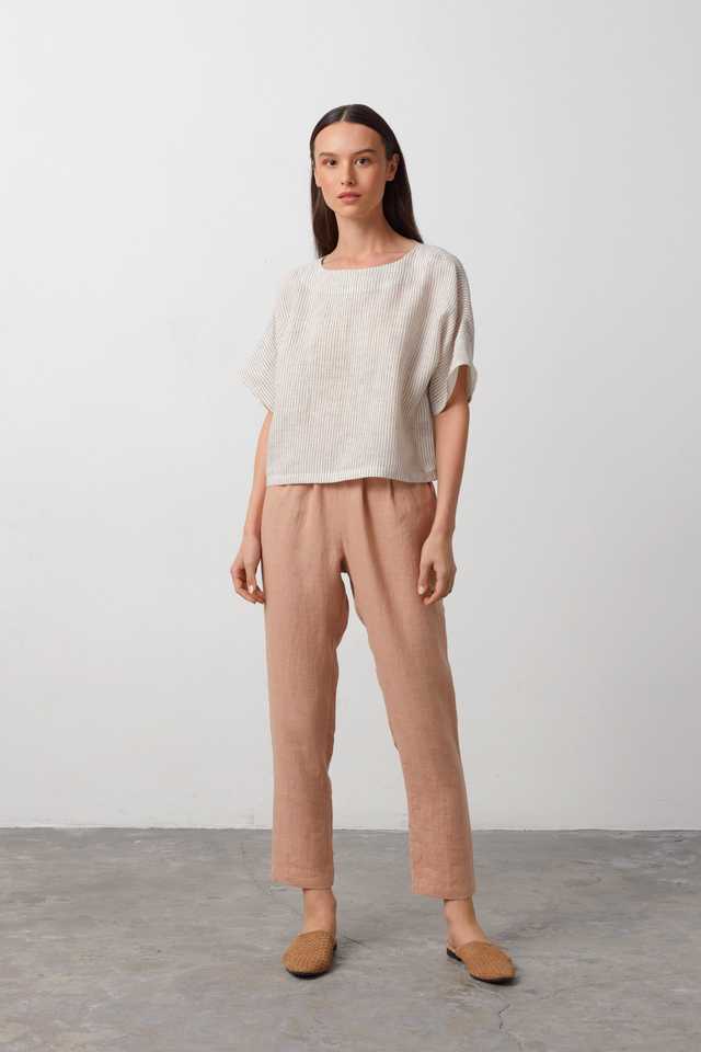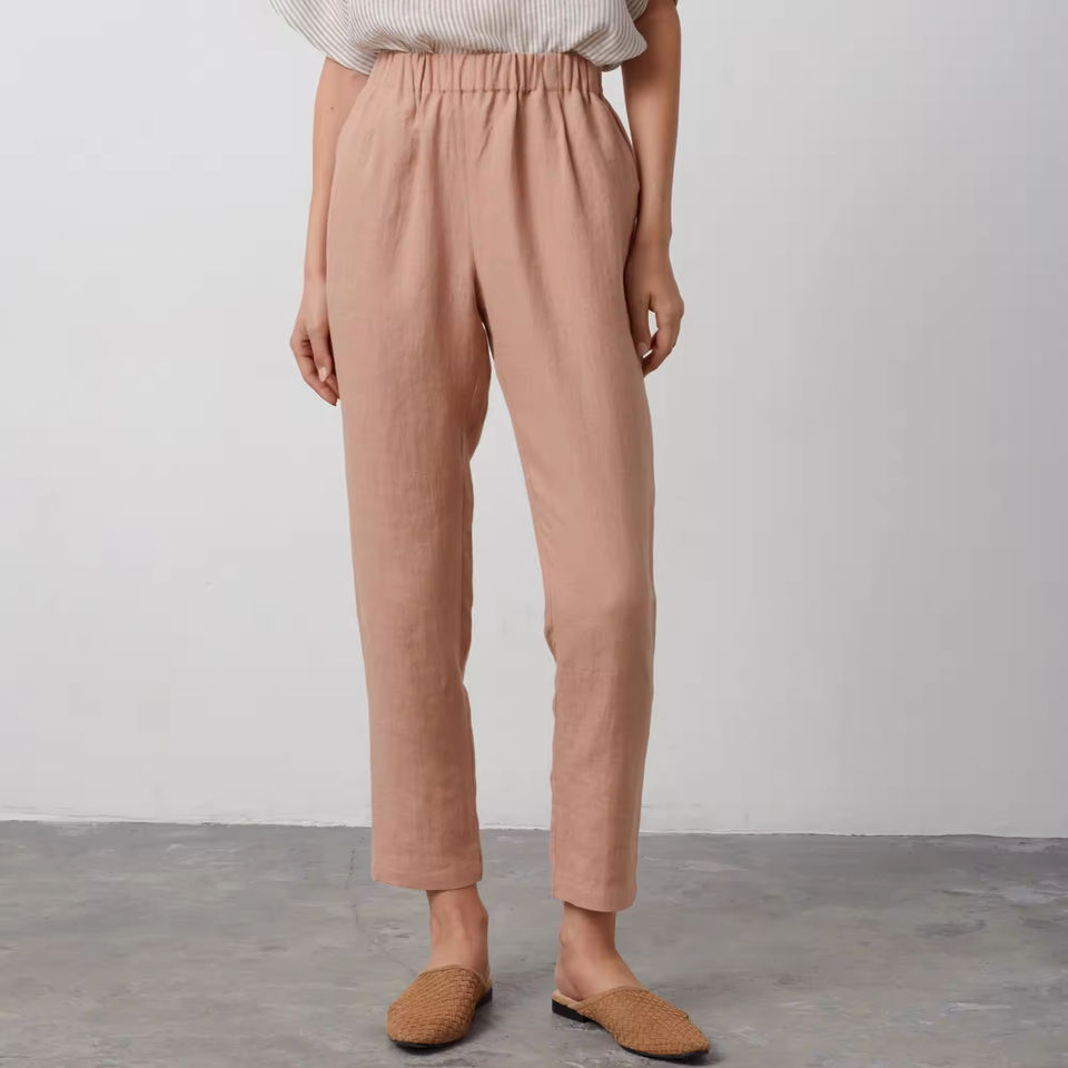 Product Name:Solid color Rust Elegant Cropped Tapered Linen high waist pants