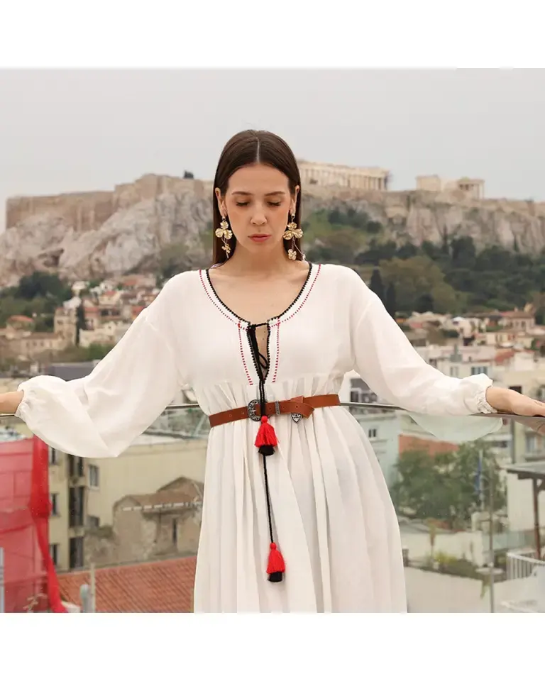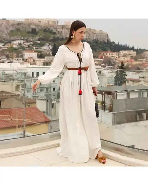 ชุดแม็กซี่เดรสยาวคอลเลคชั่นใหม่ของผู้หญิงชุดทำงานยาวเต็มตัวลายปักปักแขนธรรมดาเซ็กซี่ย้อมยาวเป็นธรรมชาติ