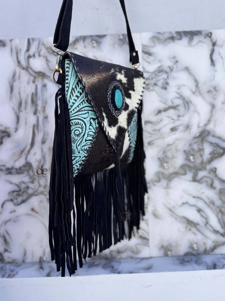 กระเป๋าสะพายข้างหนังวัวขนเฟอร์สำหรับผู้หญิง, กระเป๋าหนังมีพู่ดีไซน์ใหม่กระเป๋าถือหนังวัวมีสายคาดลำตัวมีสไตล์ของขวัญ