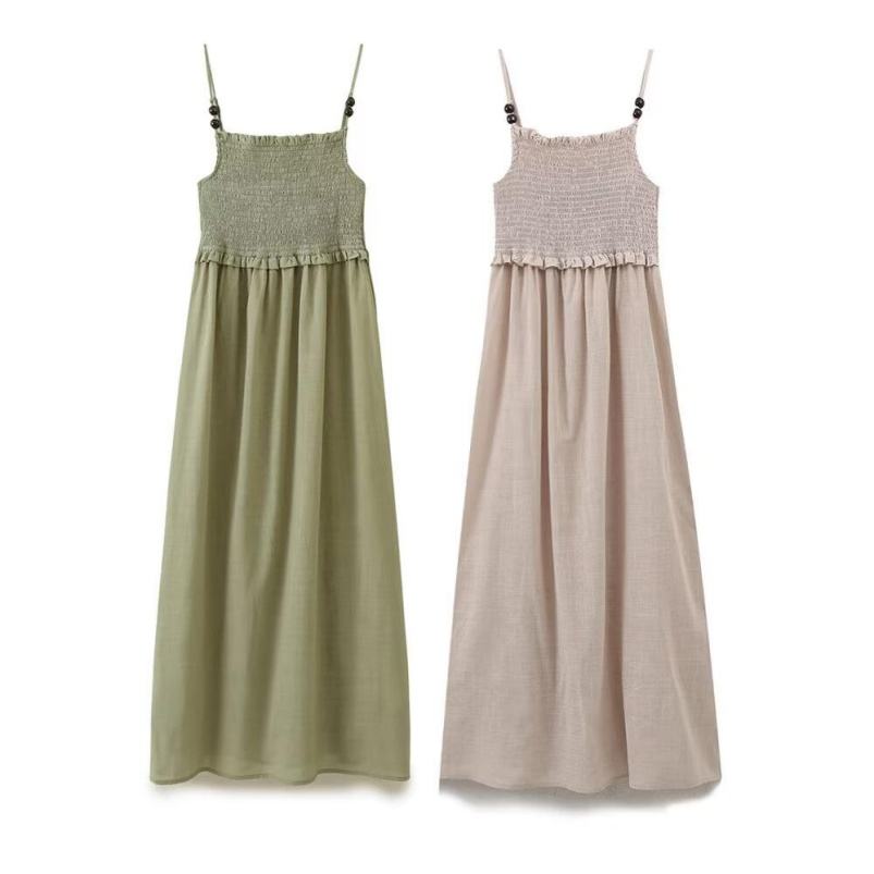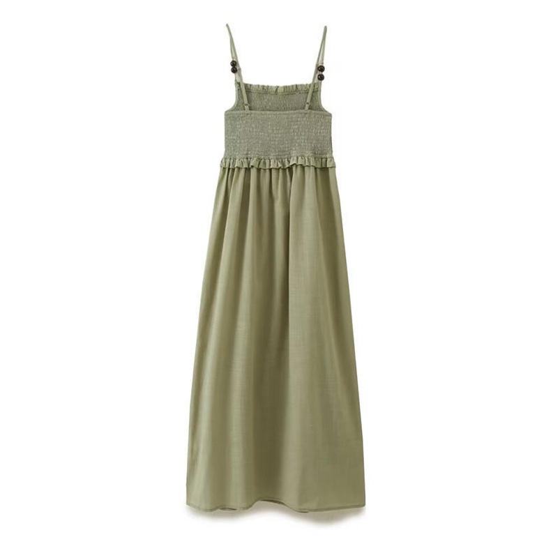 ชุดเดรสแฟชั่นเอวสูงสำหรับผู้หญิง, เดรสมิดิแฟชั่นใหม่ย้อนยุคลำลองมีสายคล้อง