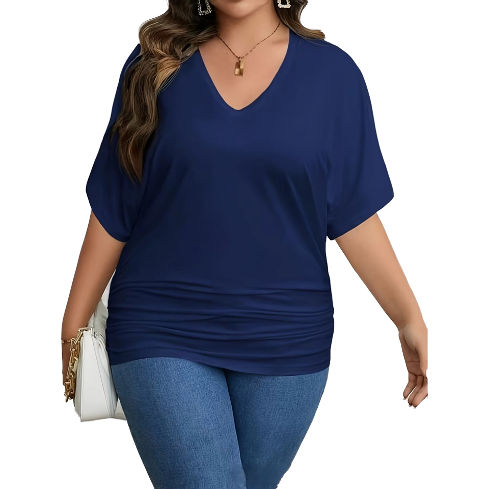 เสื้อยืดแฟชั่นใหม่สำหรับผู้หญิง ทรงหลวม ไซส์ใหญ่ คอวี สีพื้น แบบลำลอง แขนสั้น ระบายอากาศได้ดี เหมาะสำหรับฤดูร้อน