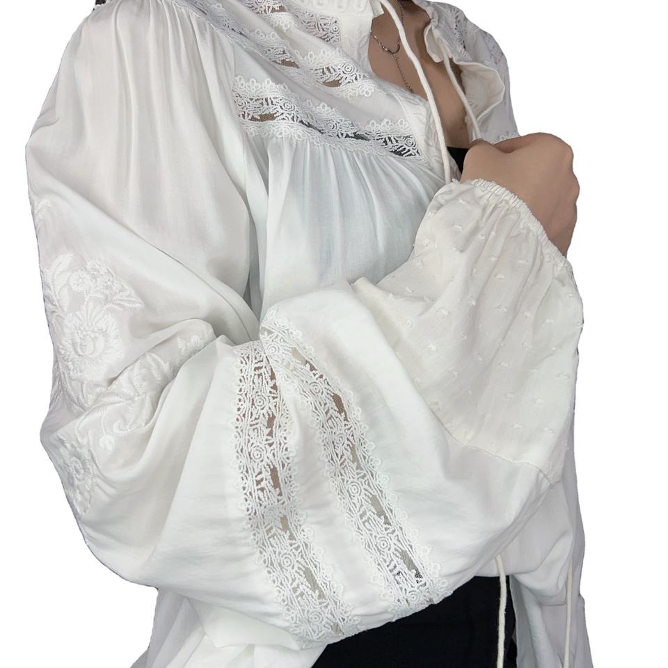 เสื้อเชิ้ตแขนยาวปักลายแฟชั่นใหม่สำหรับผู้หญิง เสื้อลูกไม้สีขาวลำลอง