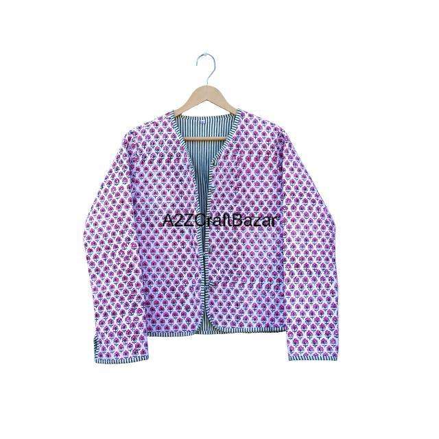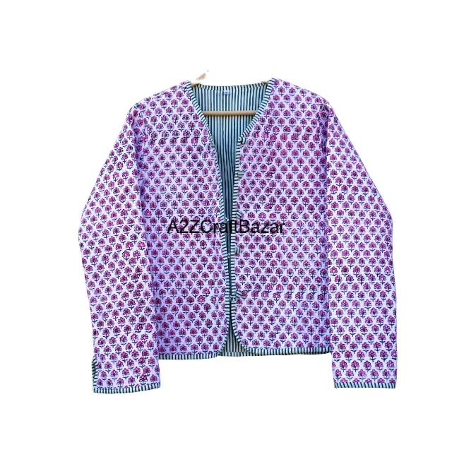 Boho ผ้านวมแบบกลับด้านได้สำหรับผู้หญิงแจ็คเก็ตผ้าฝ้าย100% ดอกไม้คอวีนุ่มสบายๆแห้งเร็วทำด้วยมือสไตล์ใหม่