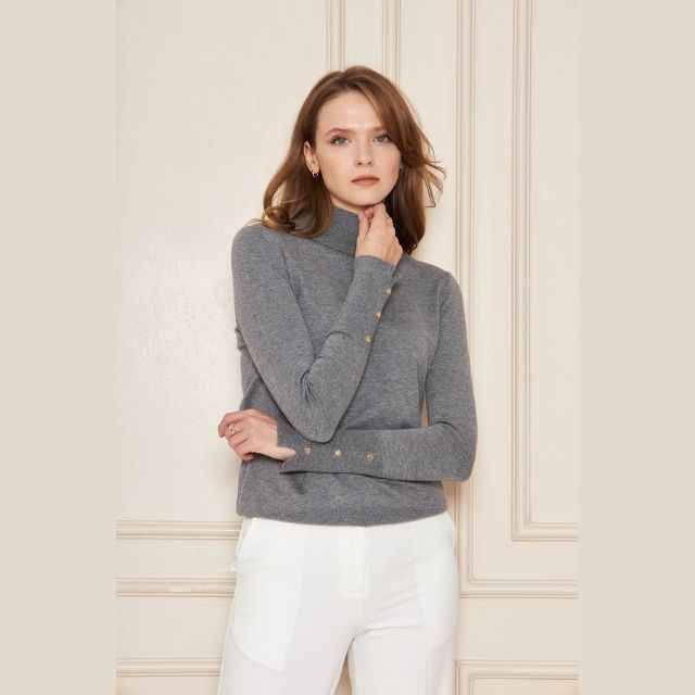 เสื้อสเวตเตอร์ไหมพรมคอเต่าติดกระดุม แขนยาว แฟชั่นใหม่สำหรับผู้หญิง สไตล์สปอร์ต ลำลอง ใส่ทำงานได้ สวยทันสมัย ขายส่ง