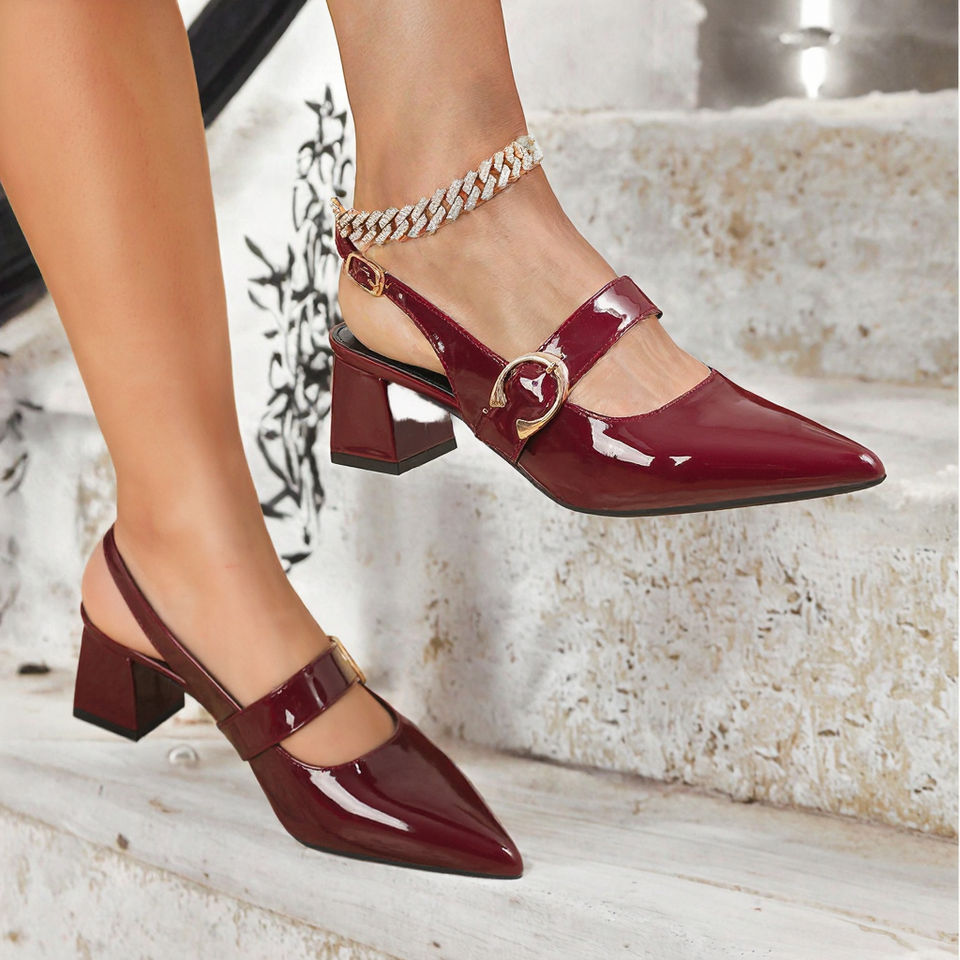 Women's New Summer Patent Leather Pumps Square Slingback Mary Jane Dress Shoes Light Slip-On T-Strap Hard-Wearing for Spring