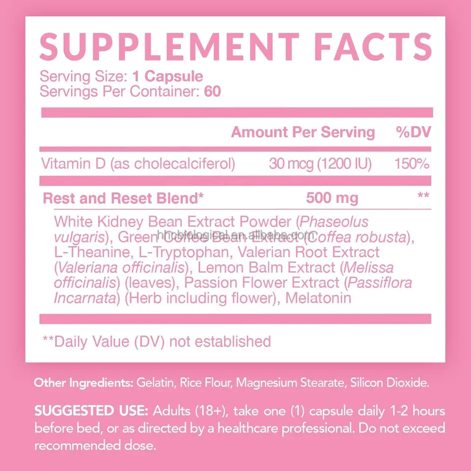 แคปซูลลดน้ำหนักตอนกลางคืนของผู้หญิงบล็อกการดูดซึมคาร์โบไฮเดรตช่วยลดความอยากทานในช่วงกลางคืนสูตรสมุนไพรที่ปราศจากคาเฟอีน