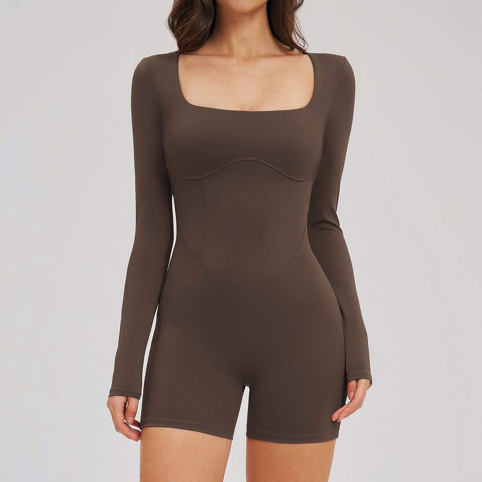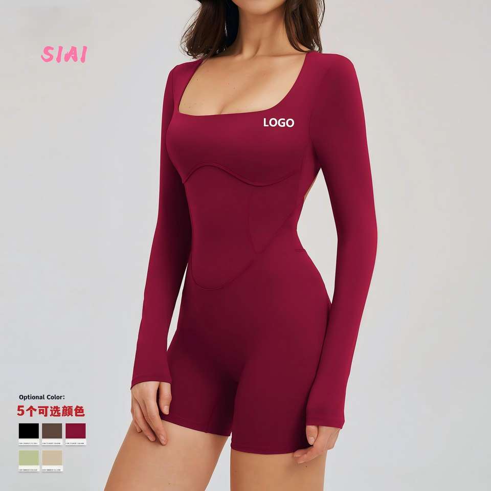 ชุดบอดี้สูทผู้หญิงแบบรัดรูปเนื้อผ้านุ่มสบาย ดีไซน์เว้าหลัง เหมาะสำหรับออกกำลังกาย ฟิตเนส วิ่งเล่นกลางแจ้ง และโยคะ