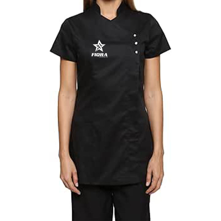 ชุดเสื้อทูนิคพยาบาลสำหรับผู้หญิง ชุดยูนิฟอร์มโรงพยาบาล ร้านเสริมสวย คุณภาพสูง ผลิตจากผ้าสแปนเด็กซ์/โพลีเอสเตอร์ รับสั่งทำโลโก้/สี บริการ OEM