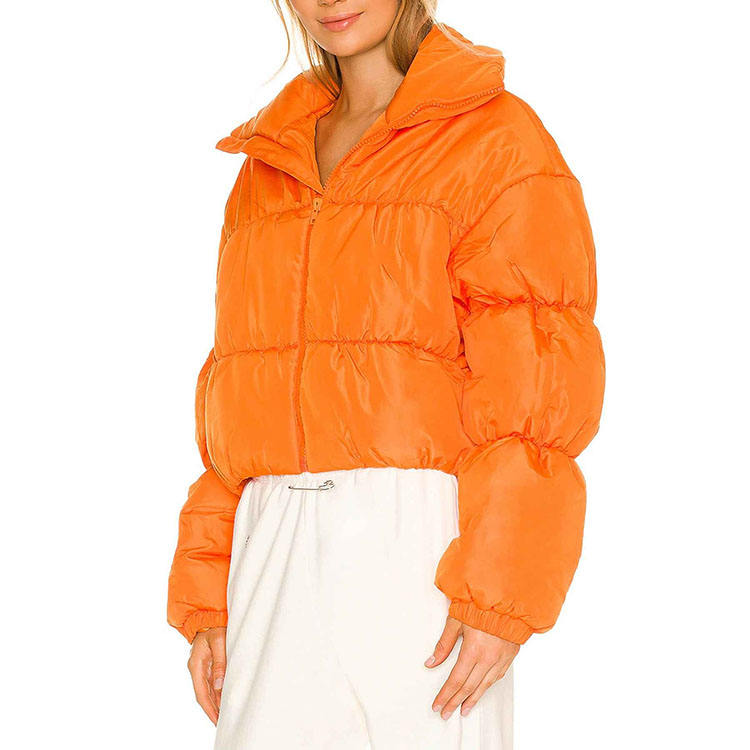 เสื้อแจ็กเก็ตแบบสั้นคอกลมสำหรับผู้หญิงเสื้อโค้ทผ้าไนล่อนระบายอากาศได้สำหรับฤดูหนาวสีส้มสำหรับใช้งานกลางแจ้ง