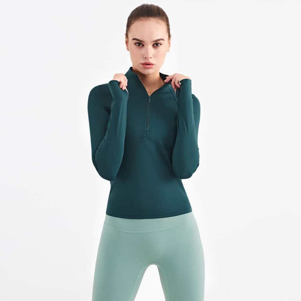 เสื้อซับในผู้หญิง OEM Suplex ไซส์ใหญ่ ทรงเข้ารูป แขนยาว คอกลม ปักลาย ป้องกันรอยยับ ระบายอากาศได้ดี เหมาะสำหรับออกกำลังกาย