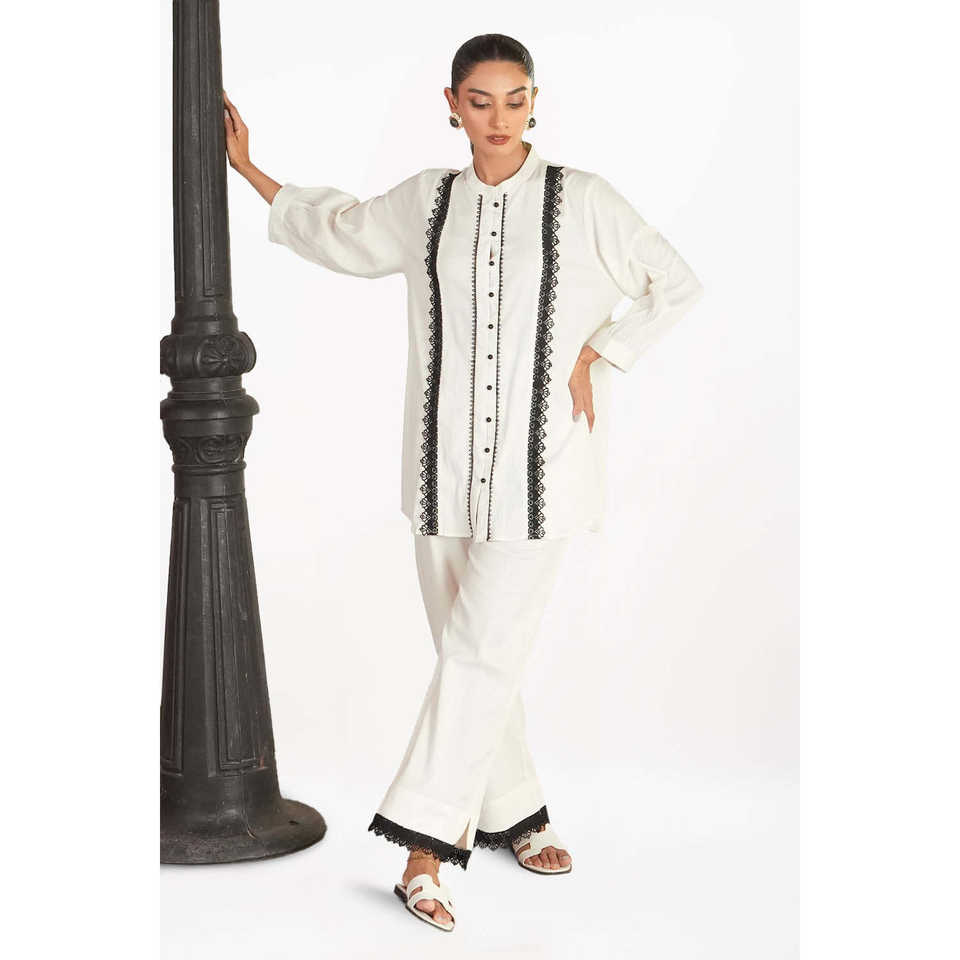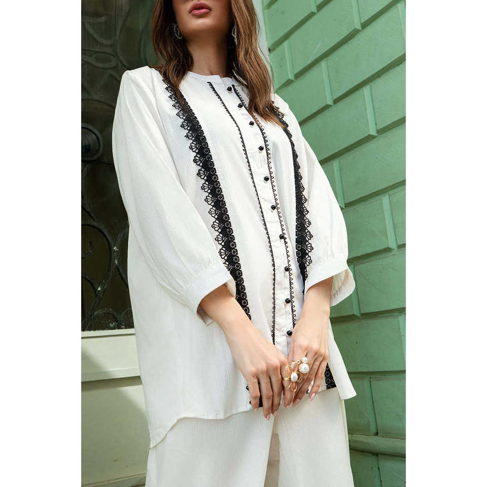 ชุดเซ็ตผ้าเครปสีขาวนวลแบบย่นสำหรับผู้หญิง สไตล์ลำลอง 2 ชิ้น เสื้อแขนสามส่วน สำหรับฤดูใบไม้ผลิ/ฤดูร้อน มีไซส์ XS-3XL