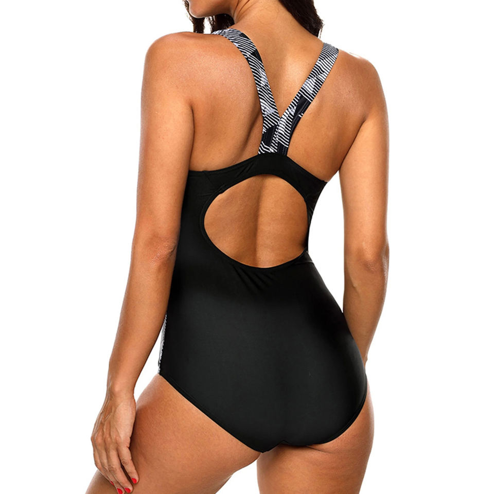 ชุดว่ายน้ำชิ้นเดียวสำหรับผู้หญิงชุดว่ายน้ำแบบสปอร์ตบราเว้าหลังชุดว่ายน้ำลดสัดส่วนบิกินี่โพลีเอสเตอร์สแปนเด็กซ์ควบคุมหน้าท้อง