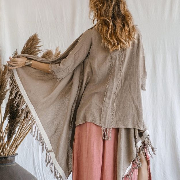 เสื้อคลุมกิโมโนผ้าลินินสำหรับผู้หญิง