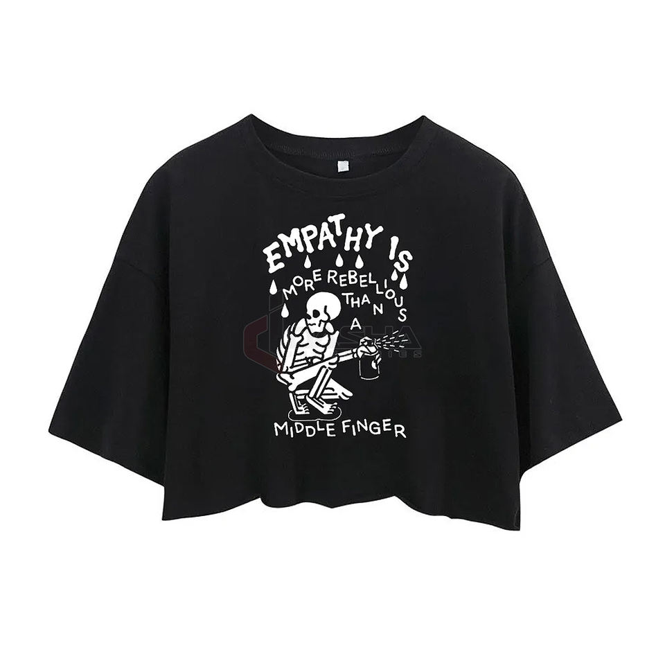 เสื้อครอปผ้าฝ้ายออร์แกนิกสำหรับผู้หญิงเสื้อลำลองพิมพ์โลโก้ผ้าคอตตอนออร์แกนิกเป็นมิตรกับสิ่งแวดล้อม