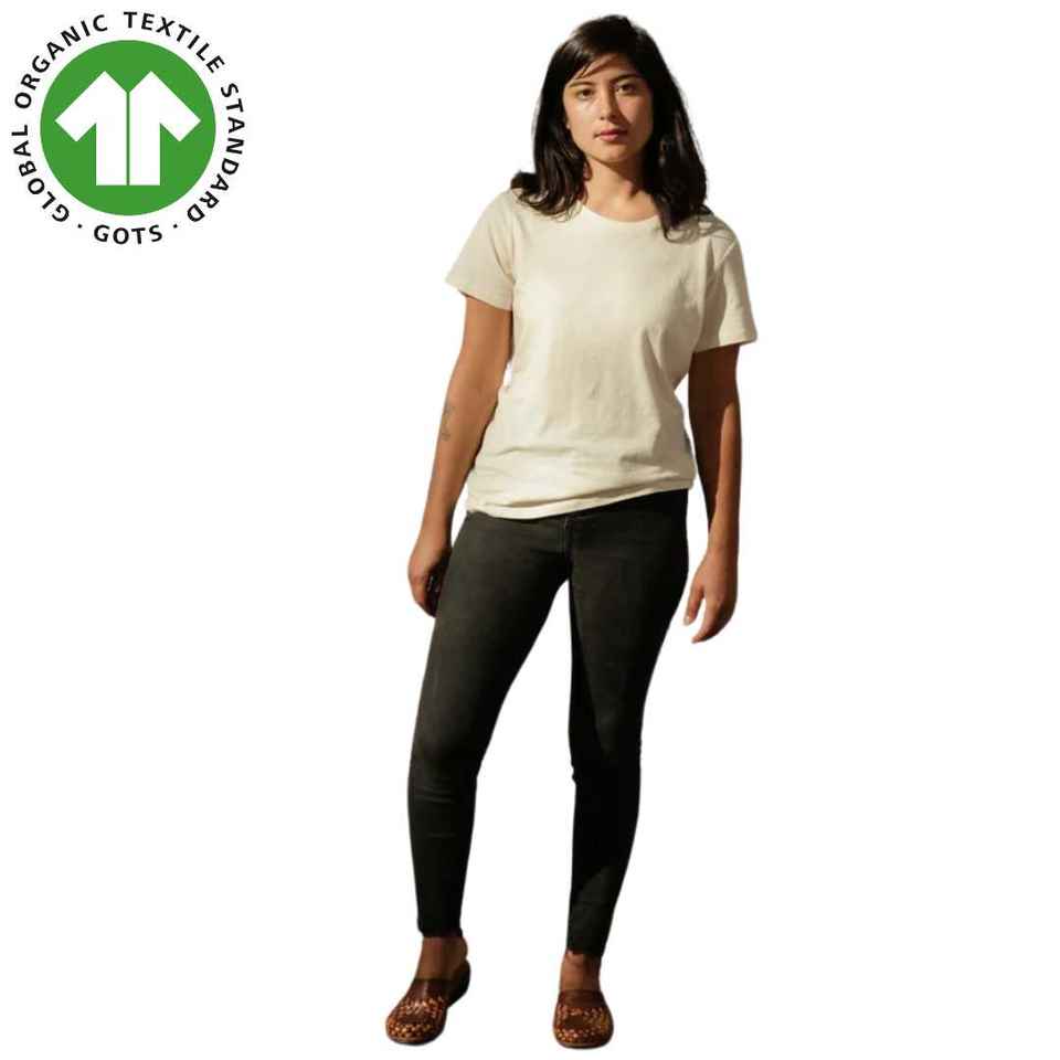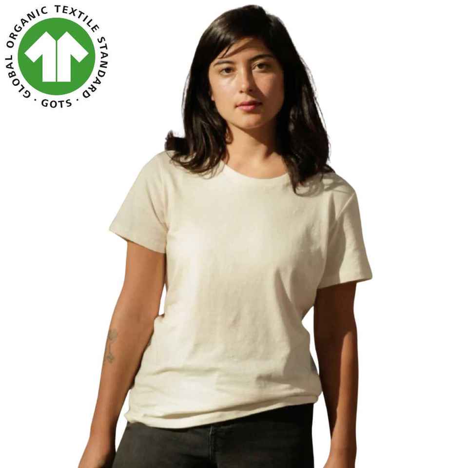 Women's Organic Cotton Raglan Sleeves T-Shirt - Natural Undyed, 4.3 oz Jersey, Cropped Sleeves, Relaxed Fit, Soft and Breathable