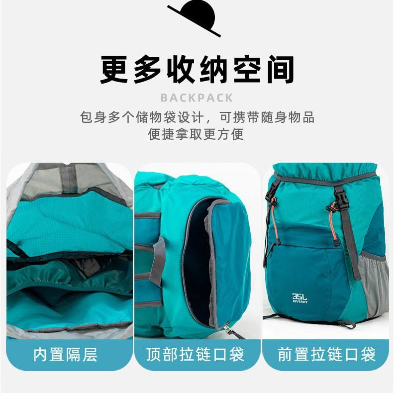 กระเป๋าเป้สะพายหลังเดินป่าสำหรับผู้หญิง 35 ลิตร น้ำหนักเบา พับเก็บได้ กระเป๋าเดินทาง สายสะพายปรับได้ สีฟ้า สีเขียว ผลิตตามสั่ง