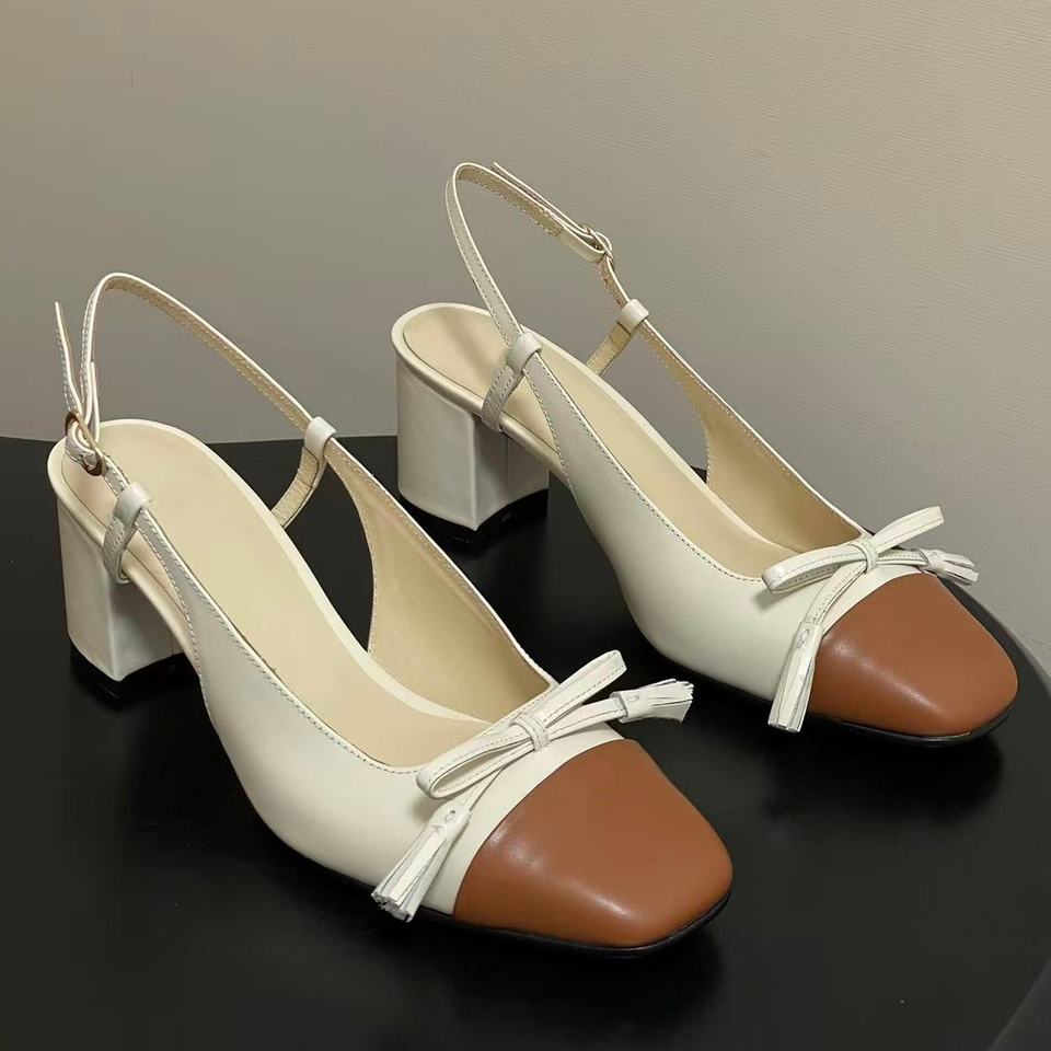 รองเท้าแตะส้นเตี้ยสำหรับผู้หญิง สำหรับกิจกรรมกลางแจ้ง หนังวัวแท้ บุรองรับฝ่าเท้า พื้นกันลื่น ดีไซน์หัวปิด ทนทาน