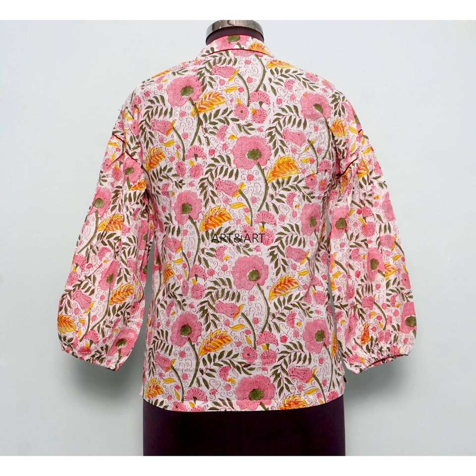 เสื้อคลุมผู้หญิง-สไตล์วินเทจเกาหลี ลายดอกไม้ ผ้าฝ้าย 100% เป็นมิตรกับสิ่งแวดล้อม ระบายอากาศได้ดี แขนพอง คอวี ทันสมัย ใส่ได้ทุกฤดู