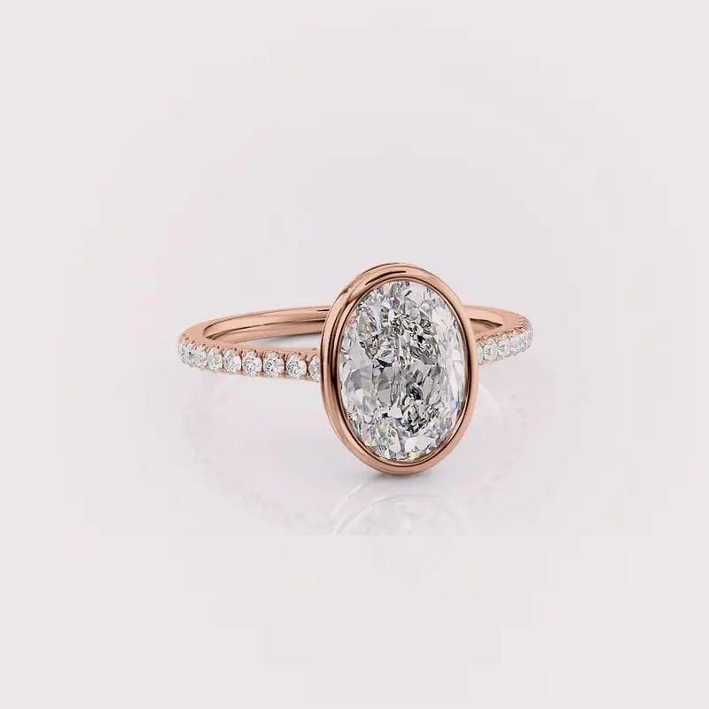 แหวนเพชรทรงรีสำหรับผู้หญิง ประดับเพชรแล็บโกรว์ ดีไซน์รัศมี ตัวเรือนทอง 14K สีเหลือง/ขาว/โรสโกลด์ ชุบโรเดียม หรูหรา ประดับเพชรแบบ Pave Band