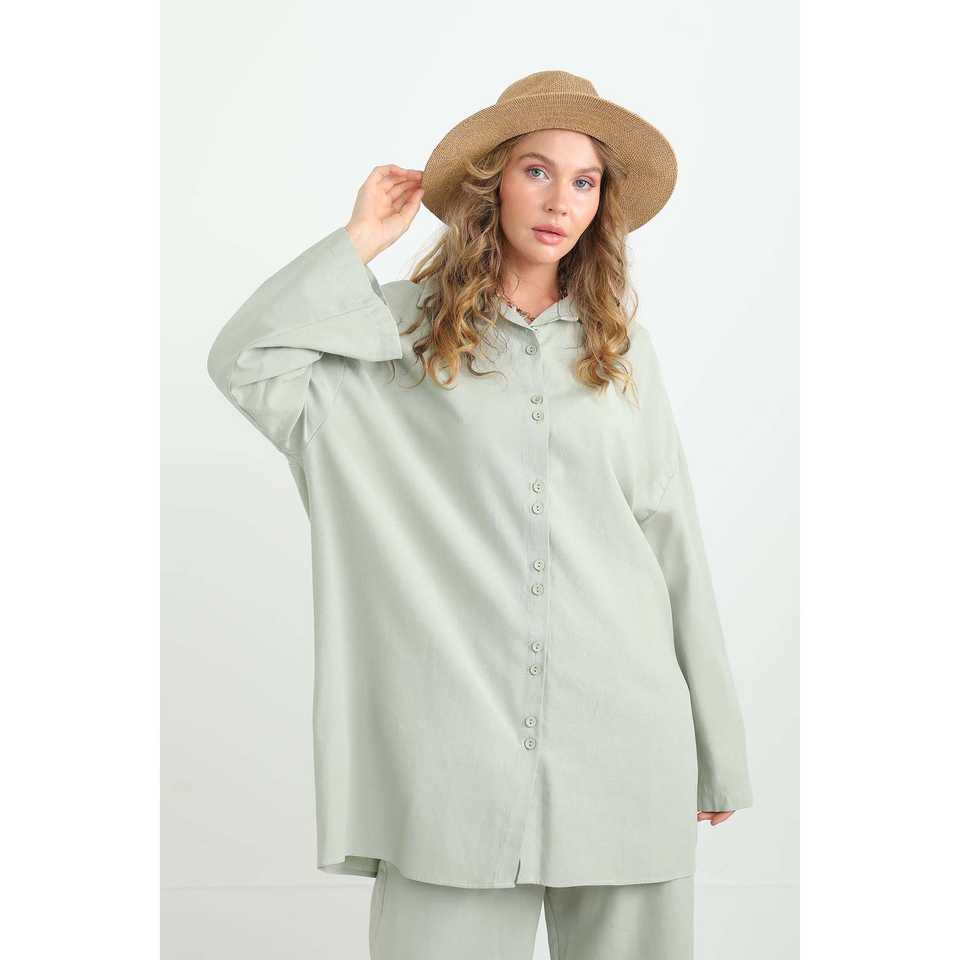 ชุดเสื้อโอเวอร์ไซส์ผู้หญิงแขนยาวผ้าอ็อกซ์ฟอร์ดสีเบจลำลองฤดูใบไม้ผลิฤดูร้อนแอลแอลเอ็กแอลเอสเอ็ม